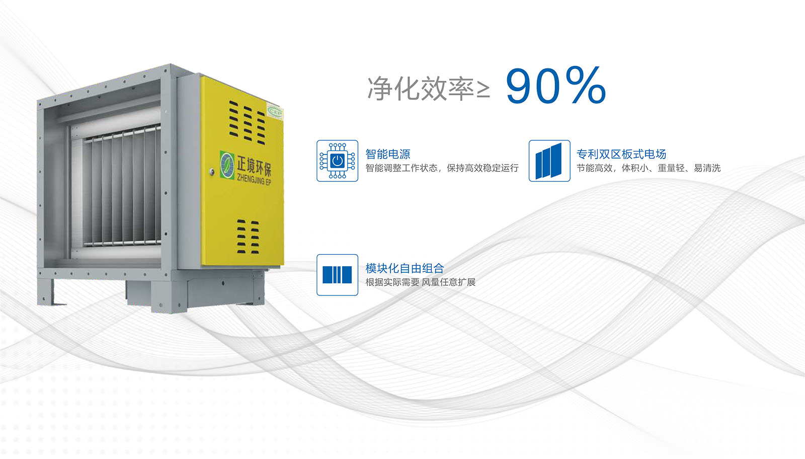 餐饮油烟净化器油烟废气首先通过前置过滤器,大颗粒物被滤除;接着进入电离区,油烟中的颗粒被电离并带 上电荷,通以高压直流电形成均匀电场,带电颗粒被接地板吸引的同时也受到带电板驱赶,被 高效去除;最后风机将干净的空气排出。