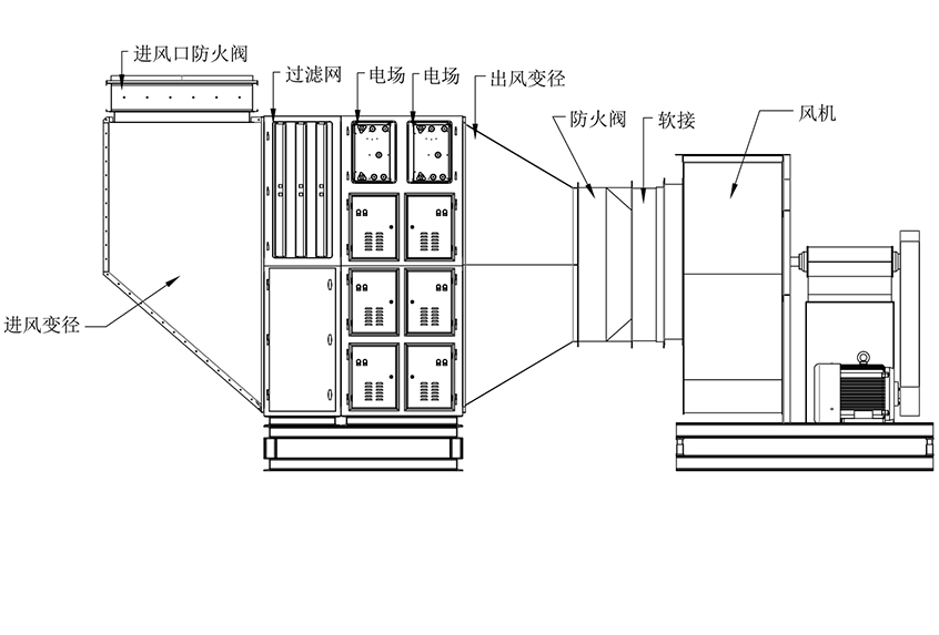 MS系列油烟净化器采用机械过滤和静电吸附相结合的方式,进行大风量的油烟净化处理。首先把油烟直接导入机械式除雾器,除雾器内放置大量层递式的金属除雾网,通过气流碰过滤丝网,把雾滴粘结下来,在过滤网内凝结成大油滴,然后在重力的作用下回流到集油盘中。采用的机械方式的过滤器称为丝网除沫器,是属于惯性碰撞除沫中的典型产品,是一种高效的气液分离设备。它具有除油效率高,结构简单,空隙率大,阻力小,重量轻等特点,具有远程显示功能。经过机械过滤后0.5μm以下颗粒的一小部分烟气,在高压直流电源的阴极和接地的阳极之间所形成的高压电场通过时,由于阴极发生电晕放电、气体被电离,带负电的气体离子,在电场力的作用下,向阳板运动,在运动中与烟气颗粒相碰,则使尘粒荷以负电,荷电后的尘粒到达阳极后,放出所带的电子,尘粒则沉积于阳极板上,而得到净化的气体排出净化器外。